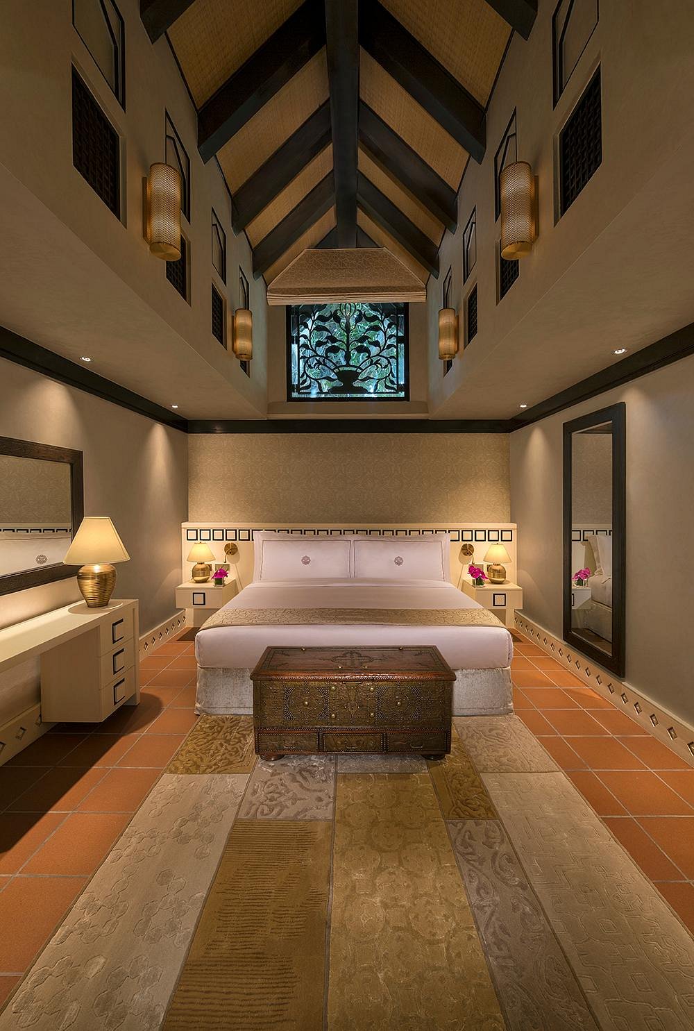 The hotel features well-appointed rooms and suites that exude elegance and luxury. Each accommodation is designed with meticulous attention to detail and offers a blend of traditional Arabian style and modern comforts. Guests can expect lavish furnishings, spacious layouts, and breathtaking views of the Arabian Gulf or the lush gardens surrounding the property.
