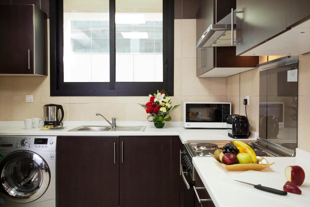 The hotel apartments at Al Waleed Palace are designed to provide a home-like environment with a range of amenities. Guests can choose from a selection of studio, one-bedroom, and two-bedroom apartments, each featuring a separate living area, a fully equipped kitchen or kitchenette, a dining area, and a private bathroom. The apartments are tastefully furnished and equipped with modern conveniences such as a flat-screen TV, air conditioning, complimentary Wi-Fi, and a safety deposit box.