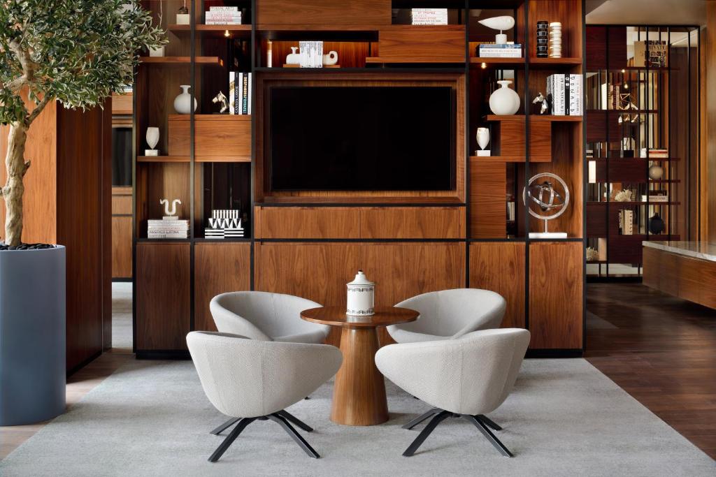 The hotel features modern and well-appointed rooms and suites that are designed with comfort and sophistication in mind. Each room at Vida Emirates Hills includes amenities such as air conditioning, a flat-screen TV, a minibar, complimentary Wi-Fi access, a work desk, and a private bathroom with modern fixtures and toiletries. The sleek and minimalist decor, combined with thoughtful touches, creates a serene and inviting atmosphere for guests to relax and unwind.